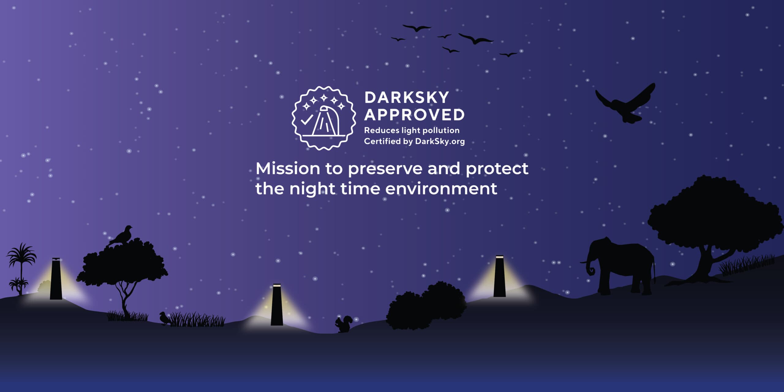 DarkSky Fixture Seal of Approval program certifies outdoor lighting fixtures as being DarkSky Approved, ensuring they minimise glare while reducing light trespass and skyglow. All products approved in the program are required to be fully shielded and to minimise the amount of blue light in the nighttime environment.