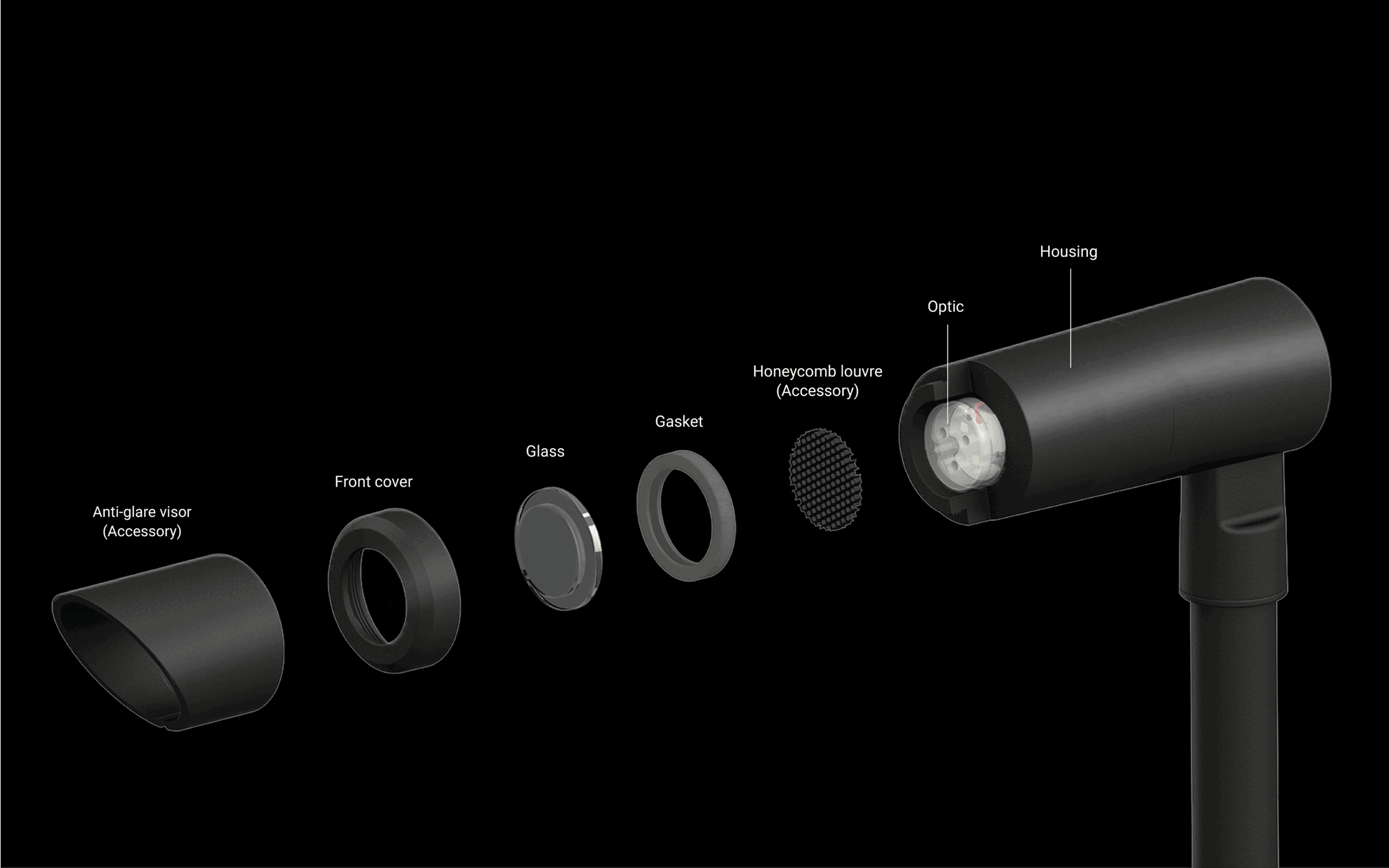 At the core of EDINBURGH’s adaptability is an extensive suite of mounting accessories. This system provides the hardware to configure the luminaire for distinct roles as a floodlight, projector, or column projector, ensuring aesthetic and functional continuity for surface, landscape, and pole-mounted installations.